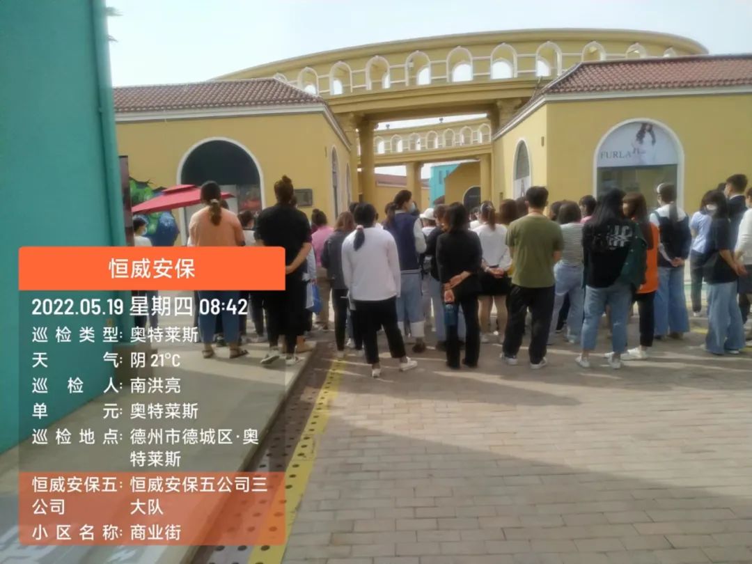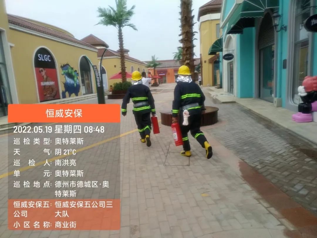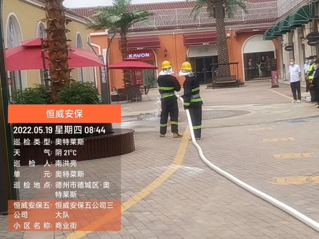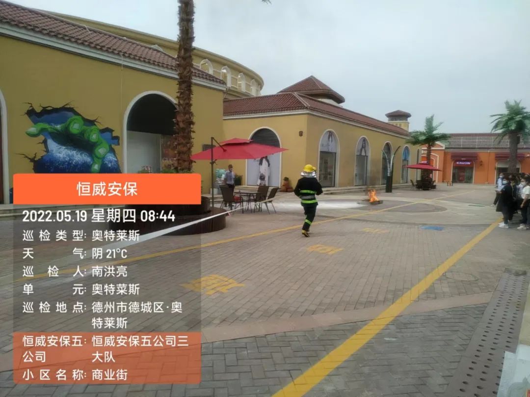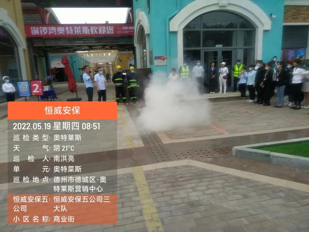 為增強(qiáng)安保人員消防意識(shí),提高火災(zāi)應(yīng)急處突、疏散能力,德州市恒威安保服務(wù)有限公司五公司按照支部書記、總經(jīng)理王新衛(wèi)要求,于5月19日在奧特萊斯開展消防演練活動(dòng)。其中有10余安保人員參加此次演習(xí)活動(dòng),客戶單位及商鋪人員預(yù)計(jì)30余人觀摩了此次活動(dòng)。