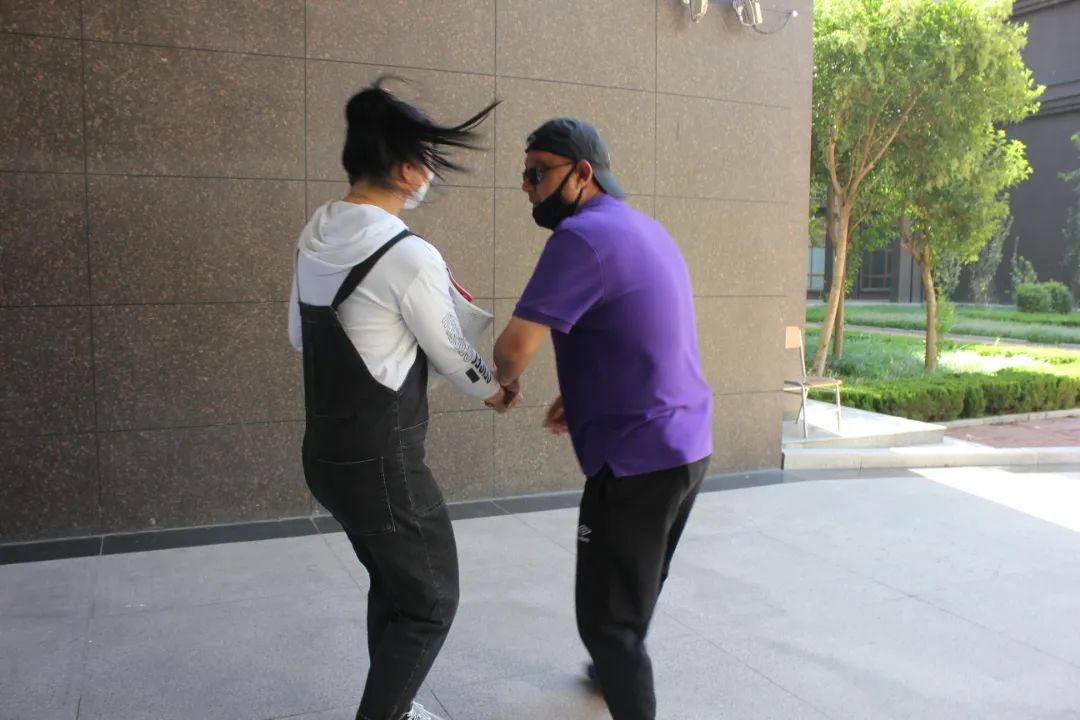 場景一:從一名風(fēng)華正茂的女學(xué)生在風(fēng)景秀麗的校園中讀書,突然被一名“歹徒”攔截調(diào)戲,正在女學(xué)生嚇得不知所措之際,兩位巡邏保安趕到此處,他們大聲怒斥“歹徒”趕緊住手。哪知歹徒不知好歹,惱羞成怒,竟然伸手打向保安。在這千鈞一發(fā)之際,保安隊(duì)長帶領(lǐng)全體值班隊(duì)員聞訊趕到現(xiàn)場支援,繼而合力將持械“歹徒”控制,女學(xué)生獲救。