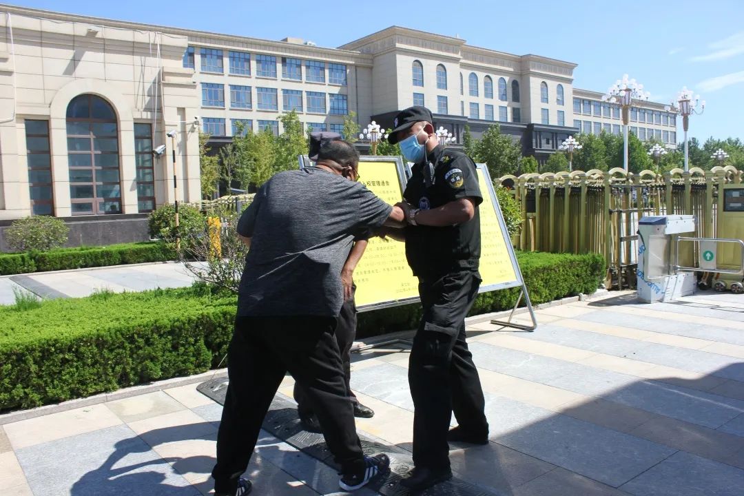 場景二:疫情期間,恒威安保公司駐點(diǎn)安保隊(duì)員日夜堅(jiān)守崗位,并嚴(yán)格按照上級及相關(guān)單位疫情防控的要求執(zhí)行任務(wù)。俗話說:林子大,什么鳥都有。這不,正值保安隊(duì)員值班時(shí),來了一位不速之客。 這位客官邁著六親不認(rèn)的步伐,橫沖直撞來到了校門口。我們的保安員馬上迎上前提示,“您好,請掃一下場所碼……”“掃什么掃,我從來也沒掃過。”說著就直闖校門。保安員馬上攔截,并好聲勸說這是學(xué)校規(guī)定,每個(gè)人都必須執(zhí)行。哪知這人一聽更急了,不問青紅皂白,直接掄斧子打向保安員。在危難之際,保安隊(duì)長聞訊立即帶領(lǐng)值班保安員沖向現(xiàn)場,將其拿下并進(jìn)行合理處置。