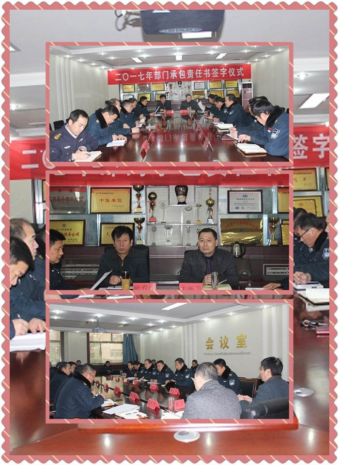 會議進(jìn)行三項內(nèi)容,一簽訂目標(biāo)責(zé)任書。大隊與各中隊分別簽訂2017年目標(biāo)責(zé)任書,通過簽訂目標(biāo)責(zé)任書強(qiáng)化中隊的責(zé)任、明確目標(biāo)方向,提升了人員的積極性,為實現(xiàn)明年工作任務(wù)打下基礎(chǔ)。二實行獎懲機(jī)制,加強(qiáng)隊伍建設(shè),促進(jìn)業(yè)務(wù)發(fā)展。根據(jù)今年完成目標(biāo)任務(wù)情況,大隊采取獎懲辦法,對任務(wù)目標(biāo)完成好的中隊長及班長進(jìn)行升職加薪,有力的提高了大家的工作積極性,為今后的業(yè)務(wù)拓展奠定了堅實的基礎(chǔ)。三大隊全年工作的總結(jié)。總結(jié)會上,王經(jīng)理充分肯定了2016年二大隊的工作成績。他指出二大隊全年圍繞保安市場,堅持主業(yè)為主、多種經(jīng)營方式并存的發(fā)展模式,不斷拓寬保安市場,取得了可喜可賀的成績。在隊伍建設(shè)上,規(guī)范機(jī)構(gòu)設(shè)置,分工明確,各負(fù)其責(zé)。另外不斷加強(qiáng)隊員崗前培訓(xùn),崗中教育指導(dǎo),著實提升了隊伍的“外在形象、內(nèi)在素質(zhì)”。同時也著重分析了存在的問題和不足。他說2017年我們要圍繞主業(yè),進(jìn)一步放大優(yōu)勢,再接再厲,率先發(fā)展,抓好隊伍、帶好班子,適應(yīng)新形勢,保持清醒頭腦,克服慣性思維,增強(qiáng)創(chuàng)新,優(yōu)化主業(yè),強(qiáng)化他業(yè),推動業(yè)務(wù)、隊伍提檔升級,實現(xiàn)雙贏的局面。