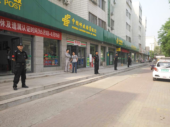 “五一”期間,人防二大隊科學(xué)制定臨時勤務(wù)預(yù)案,縝密統(tǒng)籌部署,本著“樹形象、立標(biāo)桿、見成效、奪口碑”的標(biāo)準(zhǔn),在讓客戶單位安全渡過“五一”小長假的前提下,抽調(diào)精干隊員圓滿完成了星凱國際廣場二期開盤、萬達(dá)金街慶典、郵政網(wǎng)點離退休人員認(rèn)證等勤務(wù)活動。共計出動勤務(wù)63人次,郵政網(wǎng)點的勤務(wù)還在進(jìn)行中。恒威安保保安隊員用熱心、愛心和高素質(zhì)的勤務(wù)形象贏得了客戶單位和廣大市民群眾的贊譽(yù)。
