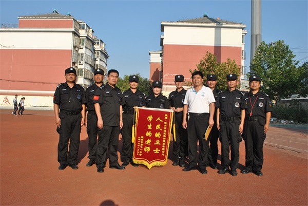 期間,教官們的嗓子喊啞了,學(xué)生們的腿累酸了、臉曬黑了,但很少有人掉隊(duì)和叫苦叫累。公司副總經(jīng)理、人防二大隊(duì)大隊(duì)長(zhǎng)王洪林多次到軍訓(xùn)學(xué)??赐繂栜娪?xùn)教官。并受邀參加了十一中、七中的軍訓(xùn)成果展示點(diǎn)驗(yàn)活動(dòng)。十一中校長(zhǎng)親自向公司贈(zèng)送了“人民的衛(wèi)士,學(xué)生的老師”錦旗一面,感謝公司的鼎力協(xié)助和教官們的辛勤付出。并對(duì)公司軍訓(xùn)教官過硬的軍事素質(zhì)給予高度的評(píng)價(jià)。