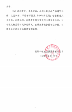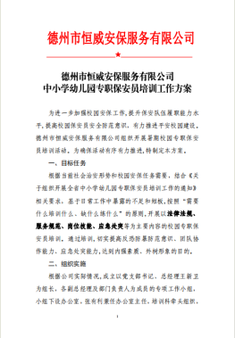為貫徹落實(shí)德州市公安局、德州市教育和體育局《關(guān)于組織開展全市中小學(xué)幼兒園專職保安員培訓(xùn)工作通知》要求,結(jié)合市公安局保安專題培訓(xùn),進(jìn)一步提升中小學(xué)幼兒園專職保安員綜合素質(zhì),增強(qiáng)反恐防暴意識,提高校園保安員對突發(fā)暴力事件的應(yīng)對能力,全力保障校園安全有序穩(wěn)定。德州市恒威安保服務(wù)有限公司高度重視,立即安排部署相關(guān)工作。