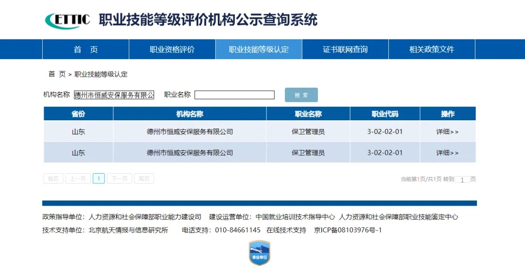 職業(yè)技能等級認定機構是人力資源和社會保障局認可的、在行業(yè)內有著領先地位和公信力的單位機構。經自主申報、專家遴選、信用核查、注冊地人力資源和社會保障部門實地考核及征求社會各方面意見等程序,德州市恒威安保服務有限公司成為職業(yè)技能等級認定機構,可開展保衛(wèi)管理員職業(yè)技能等級認定。