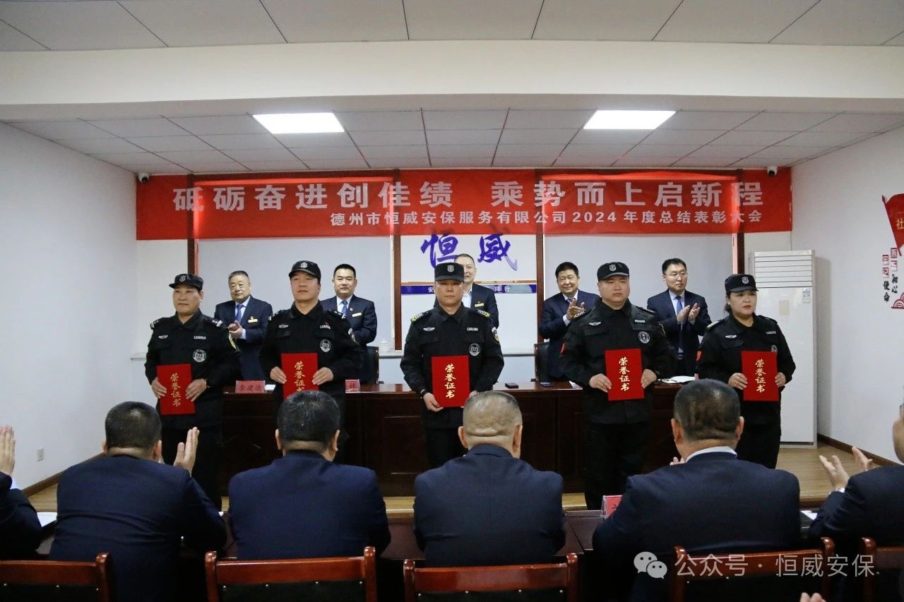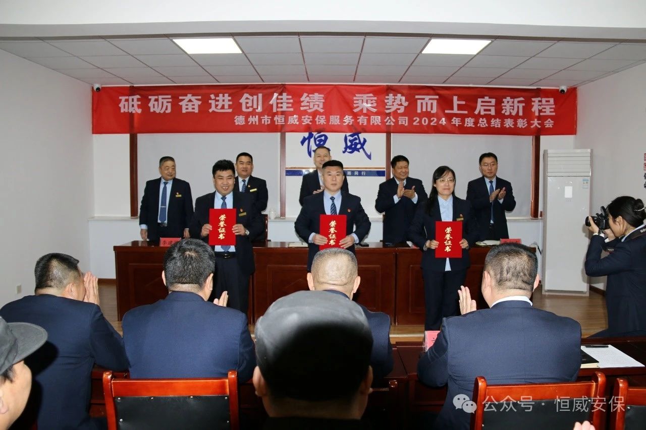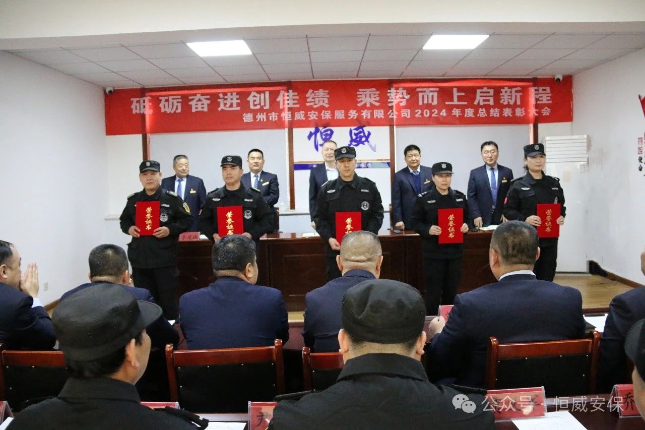 為表彰先進(jìn)、激勵(lì)斗志,總結(jié)成績(jī)、展望未來(lái),2025年2月19日上午,德州市恒威安保服務(wù)有限公司召開(kāi)2024年度總結(jié)表彰大會(huì),公司領(lǐng)導(dǎo)、各級(jí)管理人員以及獲得表彰的先進(jìn)集體代表、優(yōu)秀管理者、優(yōu)秀班長(zhǎng)、優(yōu)秀員工代表共60余人參加大會(huì),會(huì)議由公司副總經(jīng)理張玉濤主持。