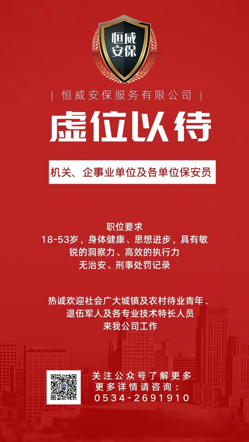 德州市恒威安保服務(wù)有限公司招聘簡(jiǎn)章